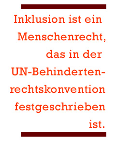 Inklusion: ein förderliches Umfeld schaffen – und zwar für alle Im Zuge der Inklusion besuchen Kinder mit Behinderung inzwischen gemeinsam mit anderen Gleichaltrigen die Regelschule. Ziel und Wirkung: Die kommenden Generationen haben keine Berührungsängste, wachsen damit auf, dass Mitschüler mit einer Behinderung etwas Selbstverständliches sind. Ergotherapeuten können helfen die Akzeptanz auch bei den Eltern zu verbessern und gleichzeitig die Entwicklung aller Kinder optimal zu fördern. Denn Ergotherapeuten sind im Gesundheitswesen an erster Stelle, wenn es um den Umgang mit Behinderungen und die Bewältigung des (Schul)Alltags geht. Ergotherapeuten wissen, wie sich bestimmte Behinderungen oder Einschränkungen im Alltag auswirken. Wir erarbeiten mit unseren Klienten, wie sich diese Auswirkungen ausgleichen oder beheben lassen. Dies ist eines der Ziele der Ergotherapie beim Thema „Behinderung“: Die Umweltbedingungen verbessern und den Menschen mit Behinderung so nehmen und akzeptieren, wie er ist. Da heißt es Barrieren abbauen, Hindernisse aus dem Weg räumen und zwar im physischen ebenso wie im übertragenen Sinne, sprich: das soziale Umfeld überzeugen und einbeziehen. Im Gesamtpaket der Inklusion ist daher die Idee, Ergotherapie in der Regelschule zu implementieren, Gründen sinnvoll. Zunächst, um das Miteinander zu erleichtern. Aber auch wegen der positiven Nebeneffekte: Vor Ort können wir Ergotherapeuten Entwicklungsdefizite bei vermeintlich gesunden Kindern früh erkennen und behandeln. Und somit fände Förderung tatsächlich für alle Kinder statt, die Zustimmung zur Inklusion würde verstärkt.